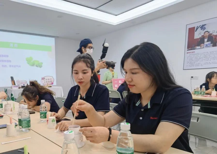 當(dāng)天下午,公司員工為即將到來的母親節(jié)開展了一場精油唇膏手作活動。